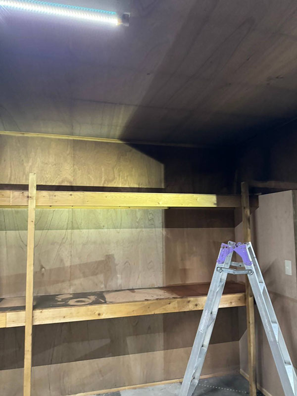 米倉庫の小火、壁は張り替えましたが、臭いが取れず相談が有りました。 壁直す前に相談して欲しかったですね。何とか臭いはならなく成りました。依頼主も満足して頂きました。